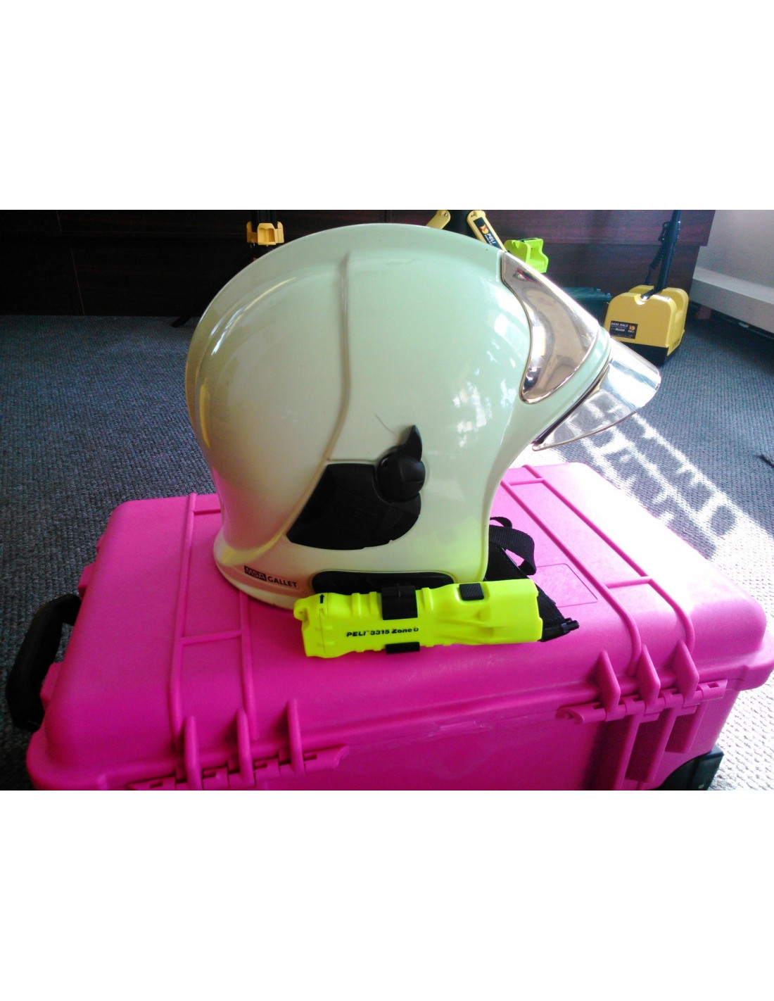 Adaptér MIPESA 704 vyvinutý speciálně pro bezpečné a pevné uchycení svítilen PELI 3315 na přilbu GALLET.